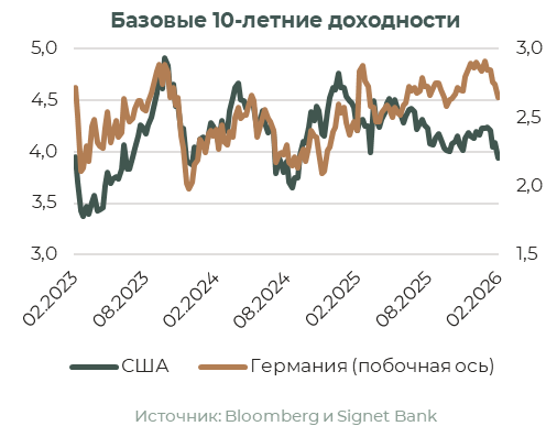 Тем не менее после публикации отчётности акции некоторых представителей Mag7, включая Nvidia, резко снизились по классическому сценарию «продажа на фактах» (акции Nvidia упали более чем на 5% за день – худшая сессия с апреля 2025), несмотря на превышение ожиданий по выручке центров обработки данных (62 млрд долларов) и позитивный прогноз на I квартал в размере 78 млрд долларов.