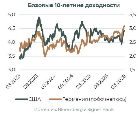 Доходность 10-летних немецких облигаций двигалась в том же направлении, приблизившись к 3,0%. Таким образом, рынки облигаций подтвердили то, о чем уже сигнализировали рынки акций: инвесторы больше не думают о том, будут ли у конфликта макроэкономические последствия, а прогнозируют, насколько серьезными и длительными они могут оказаться.
