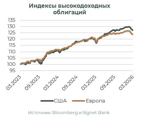 Очередные эскапады президента Трампа значительно ухудшили глобальную геополитическую обстановку в марте, а операция «Epic Fury» превратилась в реальный макроэкономический шок, что оказало заметное влияние на фондовые рынки. Не смотря на то, что 8 апреля было достигнуто потенциальное двухнедельное перемирие между США и Ираном (что вызвало распродажу на рынке нефтяных фьючерсов и рост цен на другие классы активов на фоне облегчения напряженности), учитывая акты военной эскалации и риторику сторон конфликта на протяжении последнего месяца, риск дальнейший боевых действий по прежнему остается высоким.