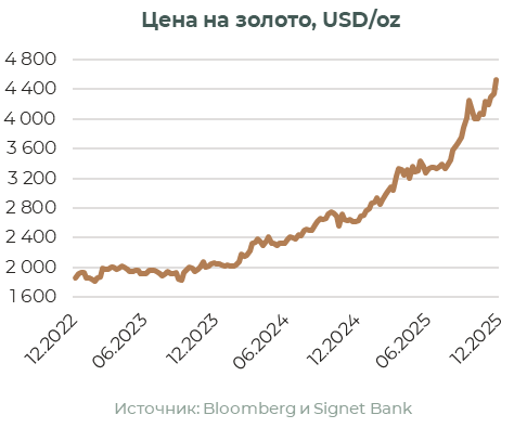 Между тем, ЕЦБ оставил процентные ставки без изменений, продолжая придерживаться своей позиции «наблюдаем за поступающими данными», несмотря на умеренные показатели роста экономики. ФРС, как и ожидалось, снизила целевую ставку до 3,50-3,75% и намекнула на продолжение мер количественного смягчения. В течение месяца цены на драгоценные металлы резко выросли и продолжили устанавливать исторические рекорды, чему способствовали ослабление доллара, продолжающиеся покупки металлов центральными банками и геополитическая неопределенность.